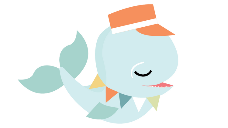Louie the little retro whale makes big waves & loves splashing in the blue sea!